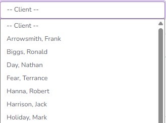 <Click> on the Client of choice, in this example “Arrowsmith, Frank” and <click> ‘Submit’: