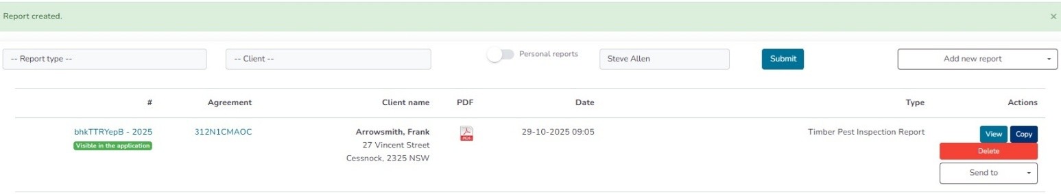 Not all inspections start from scratch. Many pest and building inspectors work with recurring clients or properties that require maintenance visits such as annual timber pest inspections. Report Systems now includes a simple “Copy” feature that lets you duplicate a previous report and update only what has changed.
