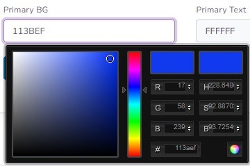 Alternatively, if you know the ‘Hex #’ of the colour you can type it in or use the selector to change colour: For example, changing the banner colour to Hex #113BEF: