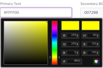 You can also customise the ‘Primary Text’ colour, in this case change the existing ‘white’ text to ‘yellow - Hex #FFFF00’: